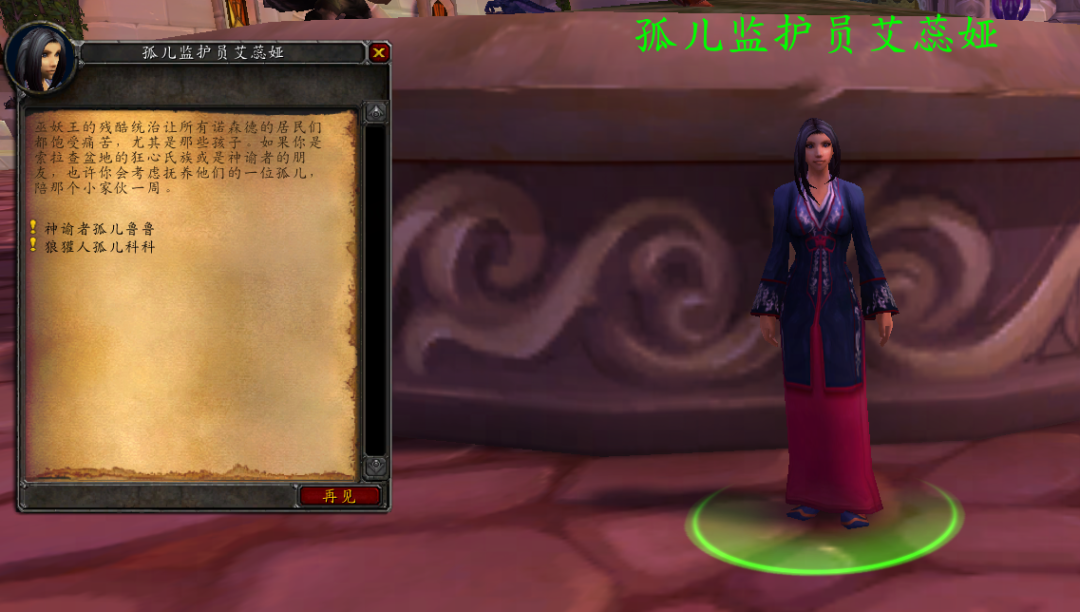 这是最后一条任务线(需要70级),勇士们同样可以前往达拉然找到【孤儿监护员艾蕊娅】接取该主线的起始任务,分别是神谕者孤儿鲁鲁和狼獾人孤儿科科,但任务只能接取一个哦~