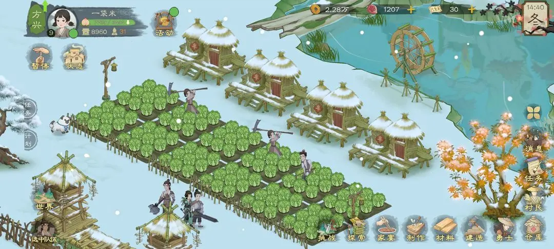 后面解锁水车,鱼塘,鸡舍,新地图森林啥的,里面都可以获取大量的食物,其中水车是可以增加种田产量的
