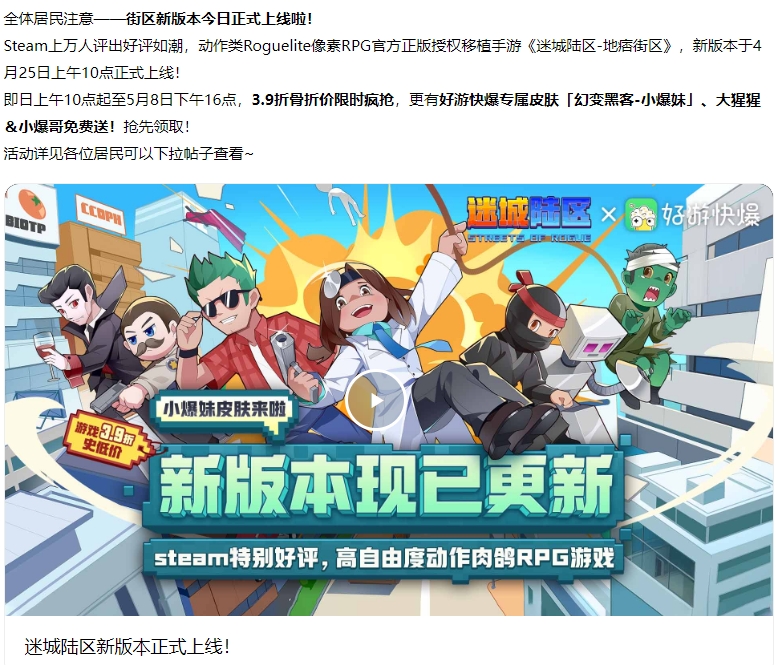 迷城陆区爆妹怎么获得?很多地痞街区老玩家在开局选人的时候发现了之前没见过的新角色爆妹,就想知道她是哪来的。其实这个角色是手机版专属角色,而且还是活动限定,下面就让小编带大家详细了解她的获得方法吧!