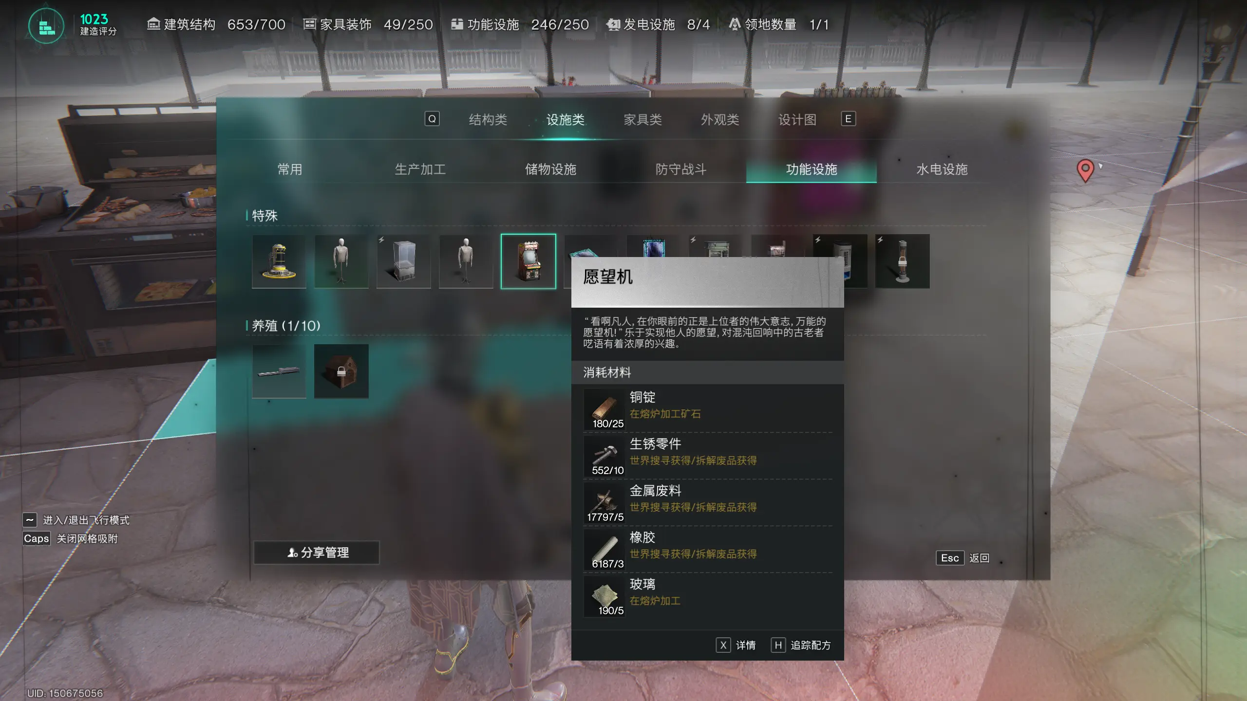 2、解锁后,就能在建造列表里就可以找到愿望机了,制作材料如图所示: