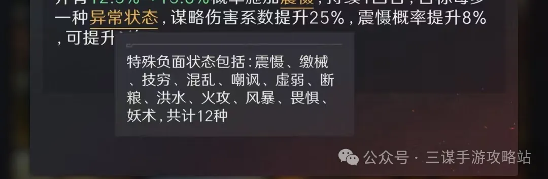 但是负面状态就多了,田丰的减属性、明其虚实/运筹帷幄的效果,王异的易伤都算是负面状态。
