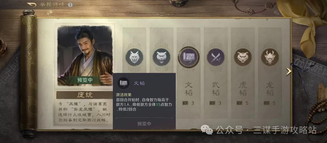 让庞统智力尽可能高,才有机会降低对手群体最高45点智力。