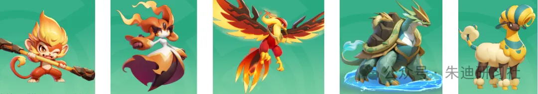 搭配思路:以朱雀为队长,沿用以猴子、朱雀、妖焱狐为核心的建队,但是把前排换成了坦度更足的玄武,去除了炎甲兽换上雷璐帕。由于火队的核心多是以技能为主要输出手段,且妖焱狐的增伤提升暴击增益也需要必杀来释放,因此雷璐帕的存在无疑是如虎添翼,它的回能增益能让妖焱狐更快放大给双C增伤,还能让双C大招释放更频繁,加快了输出节奏。