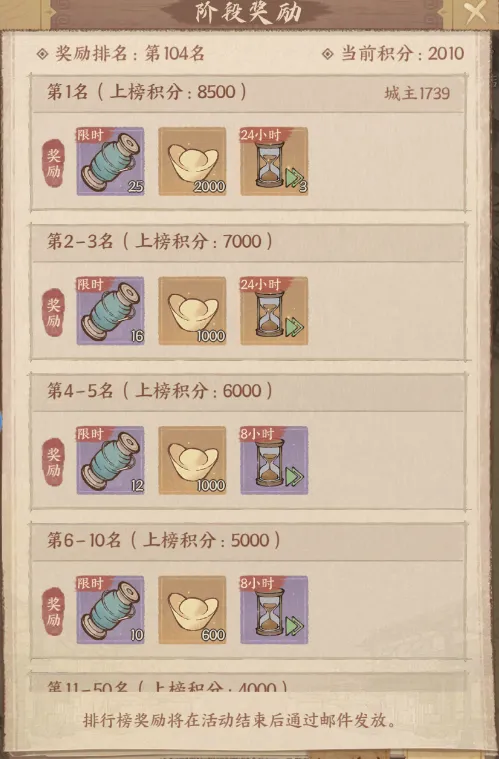 会按照活动总分进行排名,并根据排名发放对应奖励。