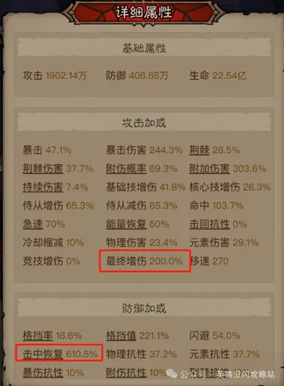 主要核心来自于三重奏的套装效果,搭配9个散件的极致加成,最终带来的收益是:最终增伤54%,最终减伤27%,击中回复90%,能量回复45%,加上头盔、腰带的增伤和减伤效果,做到了高伤害高减伤外加高击中回复、高回能的能力,是所有其他暗能搭配都远远比不上的面板加成,真正做到了又肉又有输出。