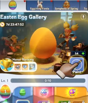彩蛋机制说明:每次点击画笔消耗1份涂料为彩蛋涂色,可获取1点经验值。完成单个彩蛋涂色后,立即获得等级对应奖励并解锁下一阶段。经验值需求遵循等级倍数规则:1级需10点,2级需20点(即当前等级×10)。连续点击触发连击奖励,单次可获得1~3点随机经验值,因此建议积累足够涂料后集中使用以触发更高收益。