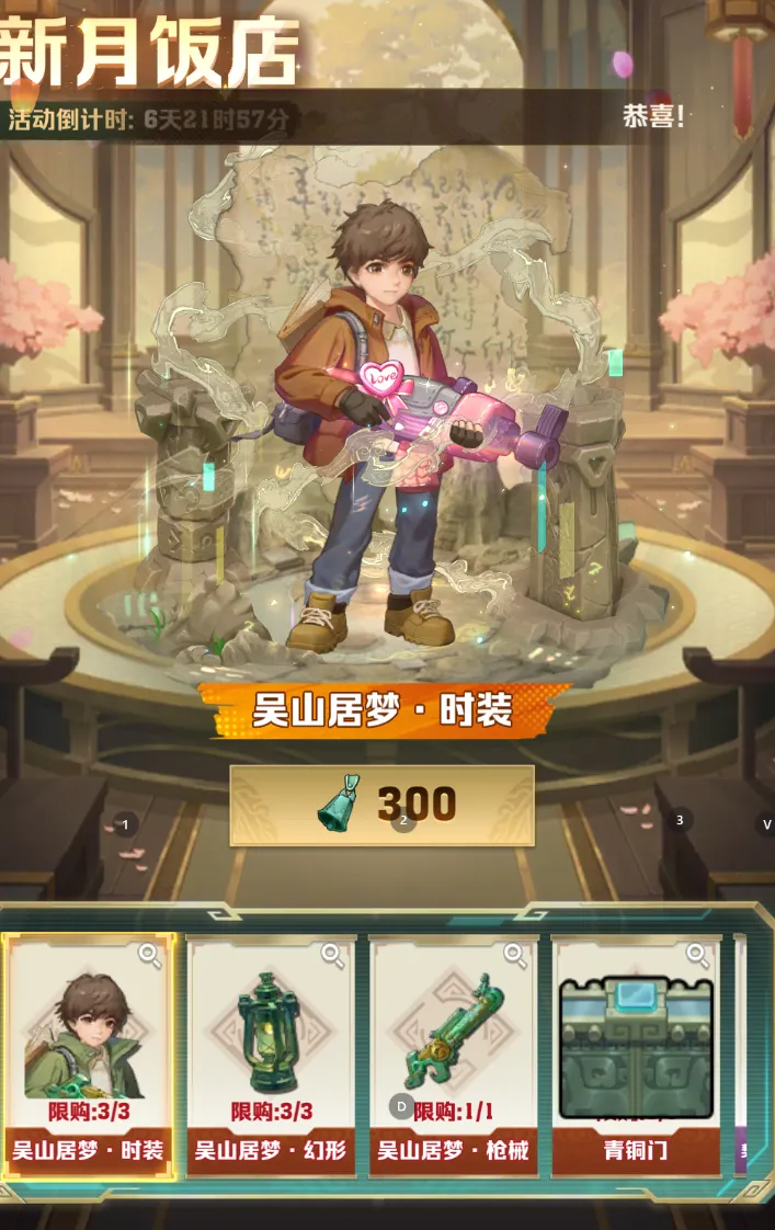 奖池内容:100*青铜铃铛(限量一个)、30*青铜铃铛(限量两个)、20*青铜铃铛(限量两个)这次活动和以往都不一样,没有抽奖次数保底!(突然觉得周年庆还挺香的!)