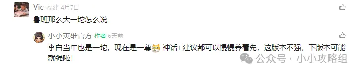 5、最后,小编今天在找周年庆消息的时候,发现了一个关于鲁班的消息,官方有说明:现版本虽然现在表现不佳,但说不定下个版本就强了。也就是说未来的某个版本鲁班刚需,而且之前出鲁班的时候官方就说召唤流的侠客会越来越多,所以慢慢养着吧。堪比李白,李白刚出就挺不错的,后面李逍遥一来就没用,沉淀了几个版本,现在有个皮肤又行了~