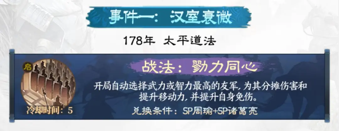 这个战法无疑是很强的,但兑换也是真的贵,SP周瑜+SP诸葛亮,两个大核,而且和太平道法的事件战法也没什么关系。