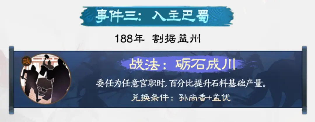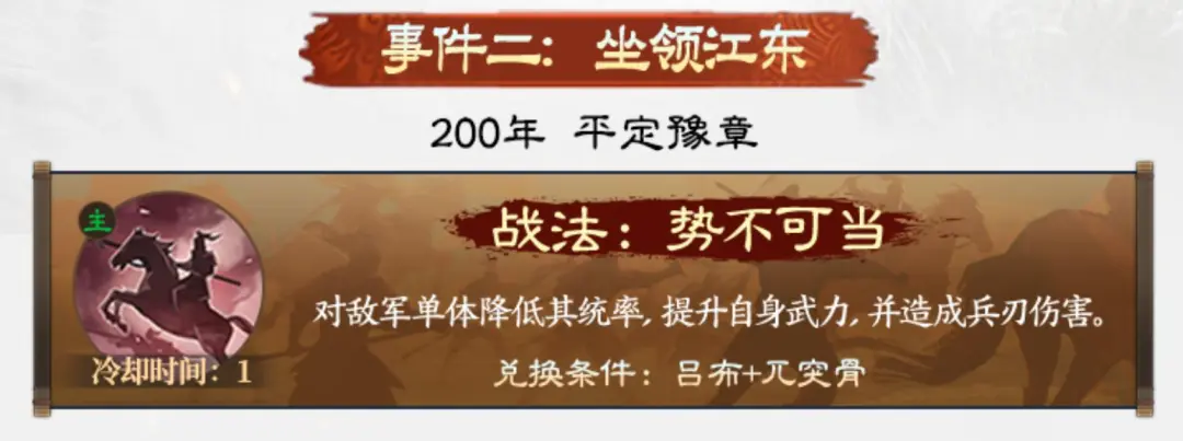 需要吕布+兀突骨兑换,又是两个核心,相对上一个好一些,兀突骨很多人都不少了,吕布S1武将,但可能很多人也不是特别多,这个战法建议需要用到再换。