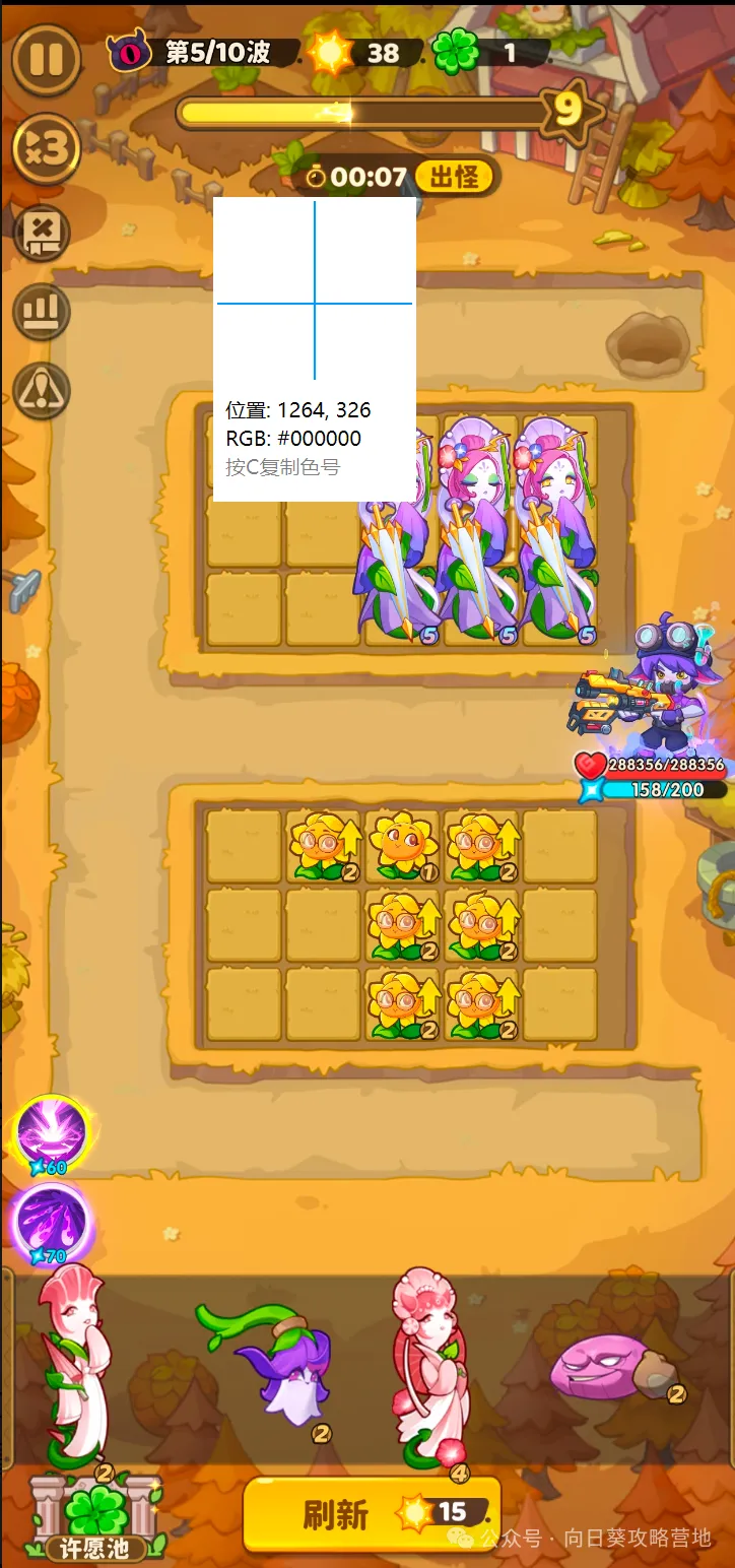 幸运草、看广告、用阳光这三个点击的先后顺序会改变刷出植物的内容,如果刷的植物不好,大退以后重新换个顺序点,刷到想要的为止。