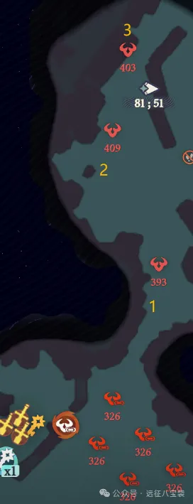 之后往上走,按下图数字顺序打怪