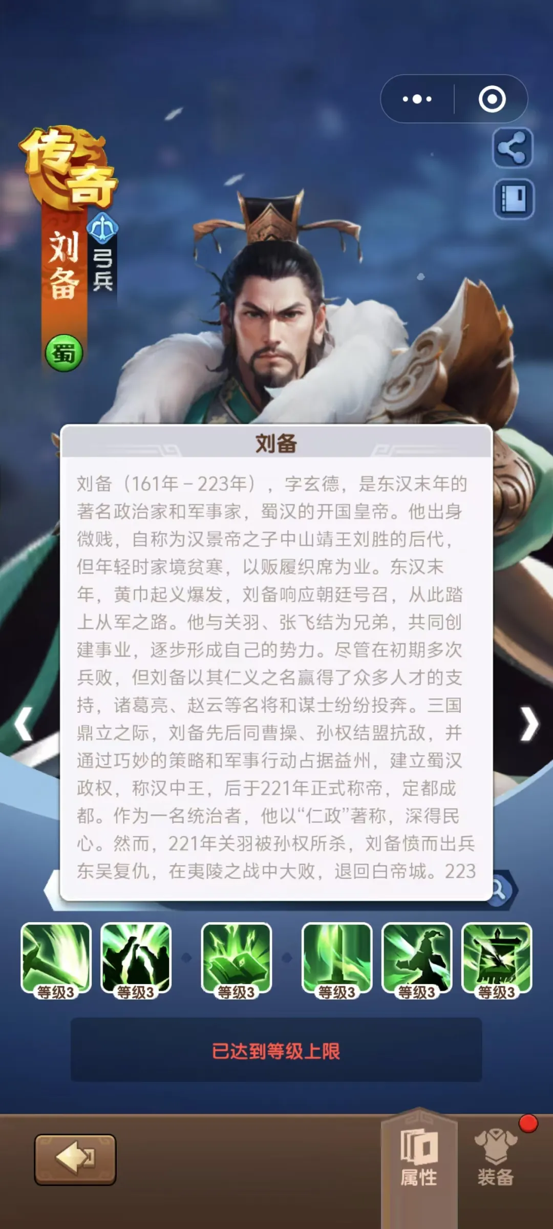 三国冰河时代刘备作为蜀主,实力自然不一般,他的讨伐的技能有着高额的伤害以及清敌对后排小兵的能力。在前期拿刘备后,讨伐的难度显著降低了。通用技能使得蜀国阵容的总体属性显著的提升,玩蜀国队伍不拿不行。下面教大家如何培养刘备