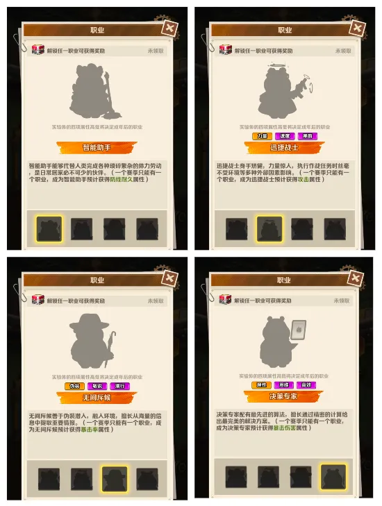 卡皮巴拉会根据自身的属性高低成年后转职不一样的职业,每个职业都可获得专属赛季训练关卡属性加成!!所以说四维真的很重要,各位玩家要合理规划培养!
