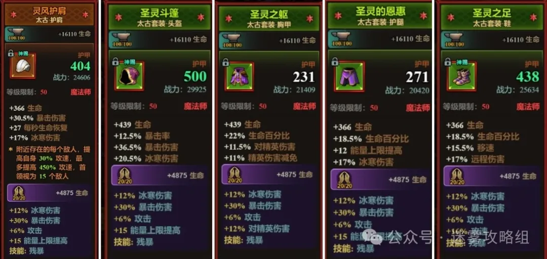 残暴(暴击伤害高于400%,每高6%则获得1.8%的伤害加成),暴击伤害基本在1217,能量上限204,配合蓄势待发有加伤,装备较难洗的就项链和戒指了。