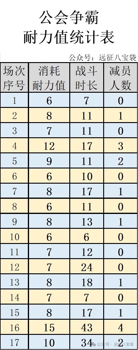 *表中场次序号5,减员2,消耗耐力值9