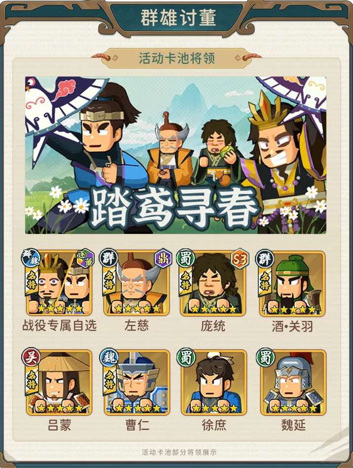 指尖无双清明卡池带着自选来啦!转眼间又是一年清明节,依稀记得那一年的活动卡池叫做‘二乔踏青’。那一年大家都在S1跌跌撞撞。卡池内容更是让笔者记到了现在,大乔+小乔+诸葛亮+郭嘉的组合。堪称王炸卡池。而今年的清明节卡池,也不负众望,拿出了战役活动限定名将的自选的王炸组合来博取玩家们的欢心。