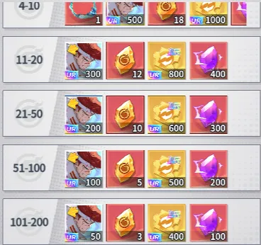 1、排行榜奖励: