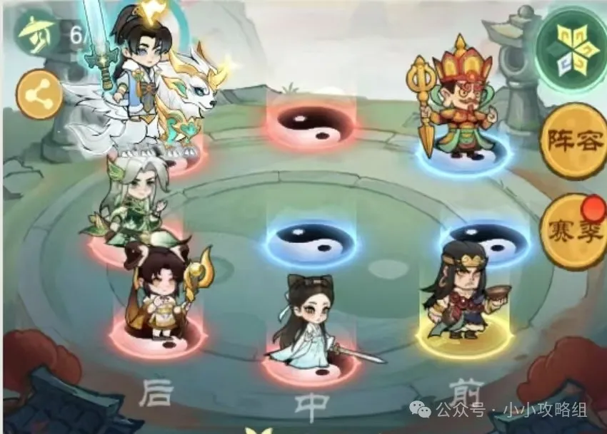 (站位这里我们奶妈可以去吃伤害,受伤增怒从而高频触发我们治疗,水月百灵儿都可以互换,位置不固定但不能放前排)