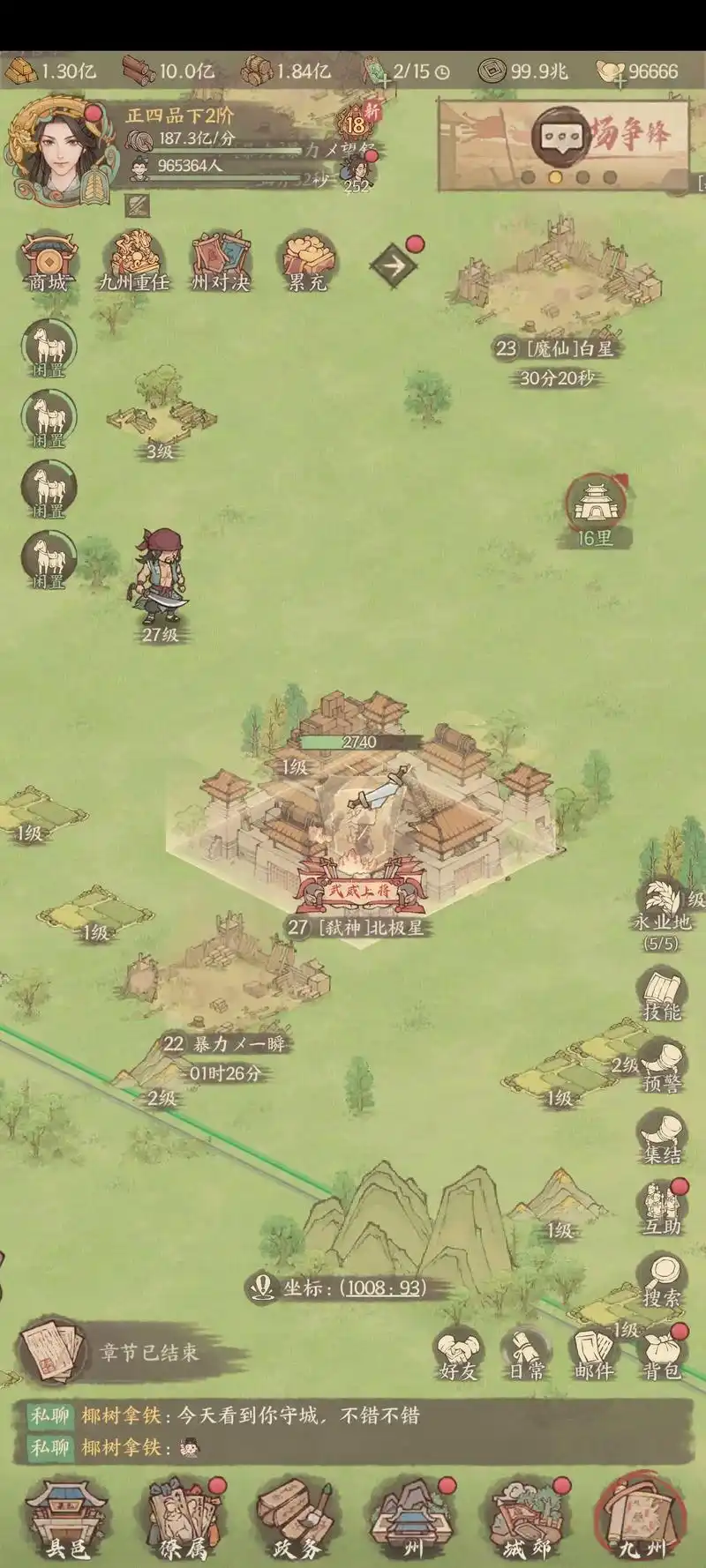 2)升级府兵:府兵是戎车作战的必备单位,升级府兵能显著提升其战斗力。确保府兵等级与城门等级相匹配,以最大化九州战斗力。