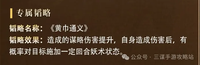 这个韬略的核心是可以打出妖术效果,配合张宁自带战法可以给队友回血,而不再需要其他队友上妖术了。