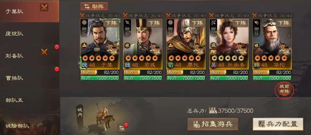 在前期可以先不考虑共存的问题,将一些群雄或者蜀国比较强的将转阵营使用。比如群雄的马腾、吕布、于吉,蜀国的刘备、魏延、祝融、姜维等,集中你红度装备比较好的武将到一队里,后期刷武勋阶段再降配。