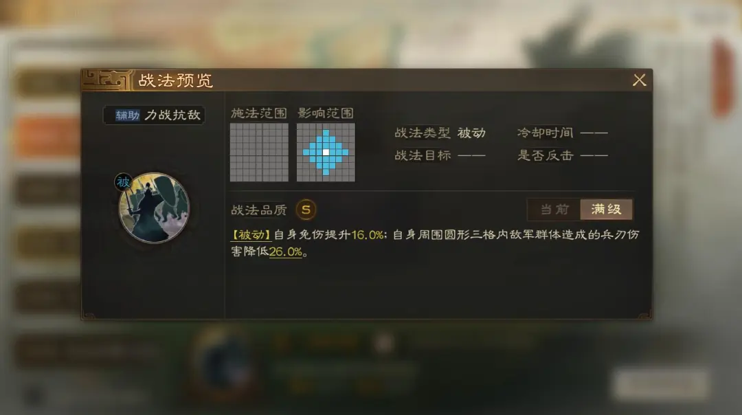 先说新战法,力战抗敌是这赛季比较有影响的战法,相当于舍身救主的PLUS版本。很多人认为这个战法出来之后魏延玩不了了,其实这个战法对魏延确实有一定影响但没有那么严重,反而是其他兵刃队比较遭殃。