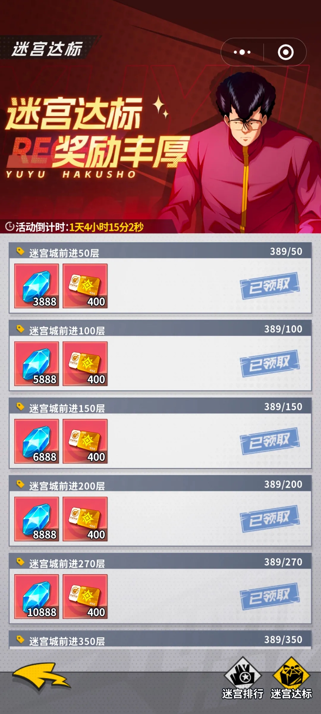(要注意的是,他是以活动开启后推的层数开始计算,得提一波战力,你才能推得动这么多,对,有点氪度的是没有问题的,平民还是有些许困难,容易卡关,推荐主养的两个强力角色,把输出提到最高)