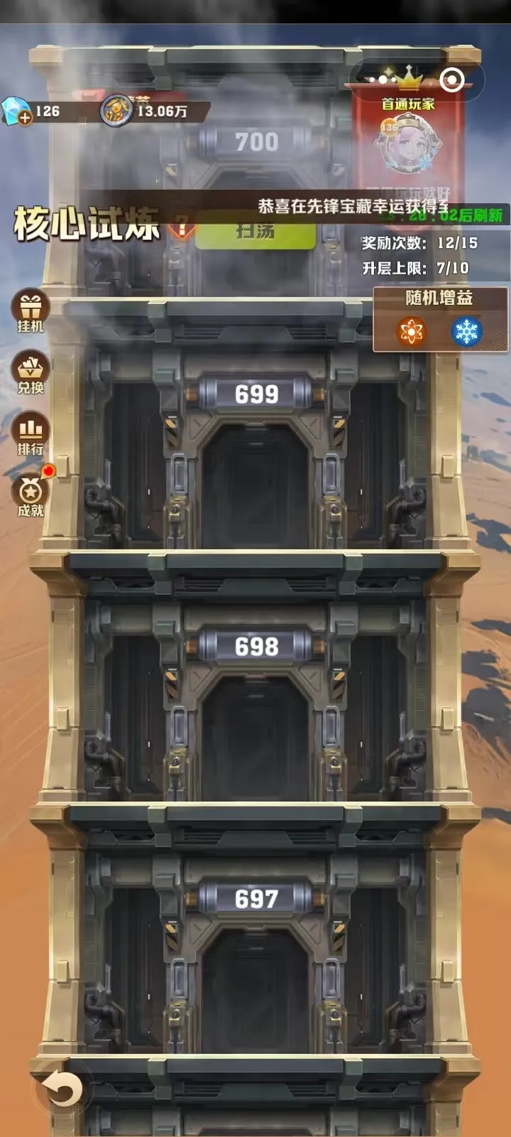 6、爬塔材料只换钥匙碎片,对超武有兴趣的可以买传说级箱子,全是限购一次,增加战力也不错。
