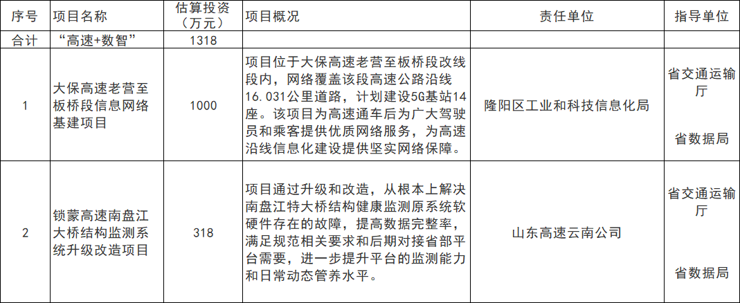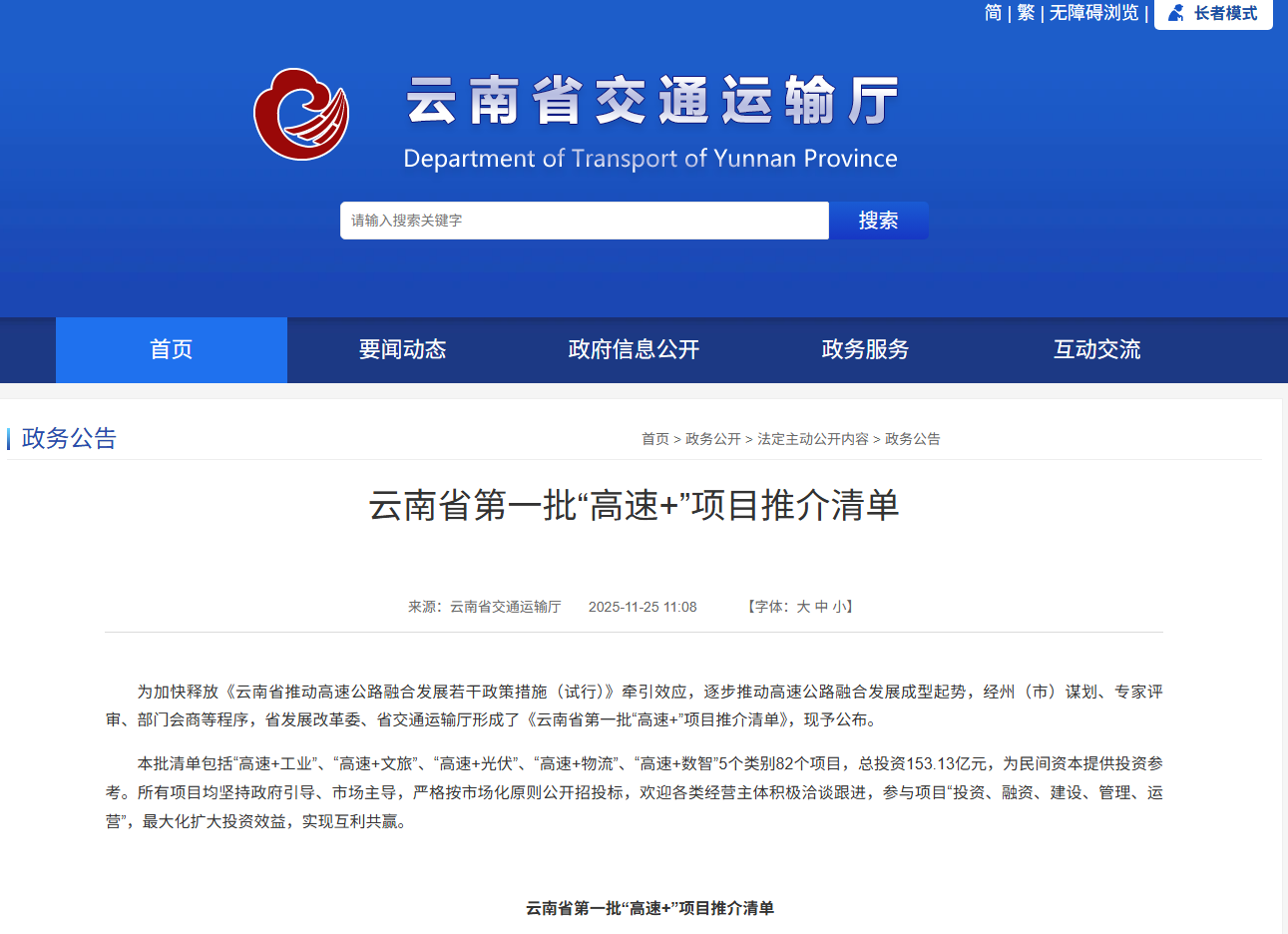本批清单包括“高速+工业”、“高速+文旅”、“高速+光伏”、“高速+物流”、“高速+数智”5个类别82个项目,总投资153.13亿元,为民间资本提供投资参考。所有项目均坚持政府引导、市场主导,严格按市场化原则公开招投标,欢迎各类经营主体积极洽谈跟进,参与项目“投资、融资、建设、管理、运营”,最大化扩大投资效益,实现互利共赢。