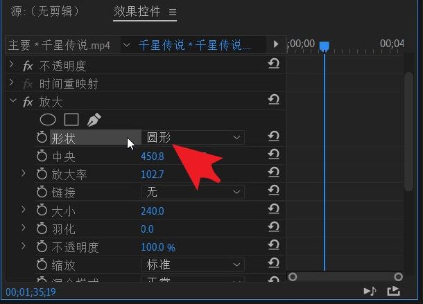 (“效果”-“视频效果”-“扭曲”-“放大”)