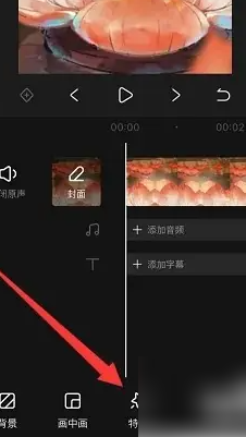 1、首先将视频导入快影,进入编辑界面后,点击界面中的星号图标,开启特效添加操作。