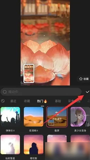 3、选定特效后,点击对勾按钮确认添加,将特效应用到视频中,预览初步效果。