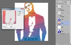 选中文字形状图层,按住alt键,在两个图层之间点击,创建剪贴蒙版。这样文字就会只显示在人物图像的区域内。