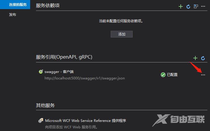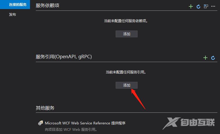在项目中右键点击依赖项,选择 添加连接的服务 ,