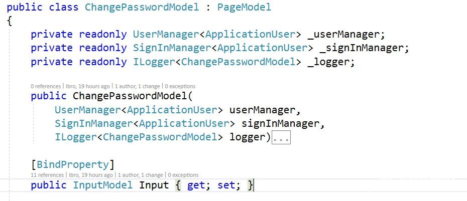 让我们回到之前ChangePassword的示例。这是ChangePassword.cshtml.cs文件的一部分代码: