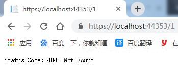 运行应用程序在浏览器上输入不存在地址https://localhost:44353/1看看配置该中间件后的效果,你会发觉当我们输入上述地址后会跳转到https://localhost:44353/Error/404链接去了,并显示: