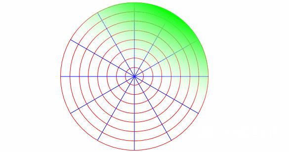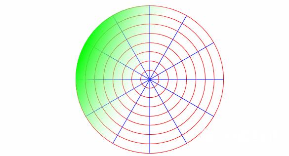 为了更好的定义这个圆,我们将radar的template使用grid面板等距分成四个区域(其实没啥用,主要是为了扇形扫描时做圆心选择的line,也可以不分成四个)。