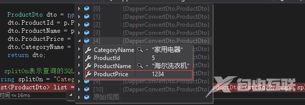 ProductDTO实体类中的ProductPrice对应ProductDetail表的Price,CategoryName对应Category表的CategoryName。