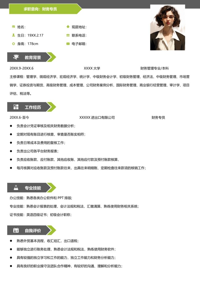 条理分明个人单页简历,整体界面简洁商务风格,可供参考,主体文字均可替换修改,适用于通用简历、求职简历、个人简历、商务简历、找工作简历、竞聘简历等相关的个人简历主题设计应用。