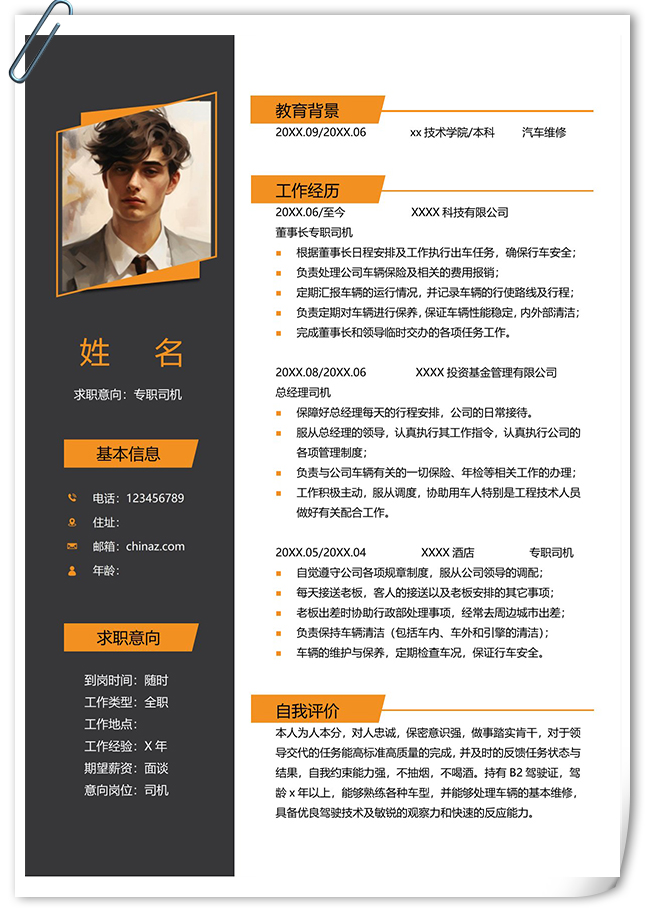 系统化三年经验商务通用简历模板,采用左右双栏的排版布局,以深灰色、橙色搭配为主色,整体界面简洁商务风格,可供参考,主体文字均可替换修改,适用于通用简历、求职简历、个人简历、商务简历、找工作简历、竞聘简历等相关的个人简历主题设计应用。