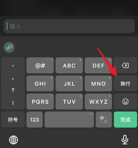 1、唤醒微信输入法,即可看到键盘右侧有【换行】按钮;