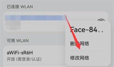 2、首先进入网络设置,长按连接的wifi,点击“修改网络”。