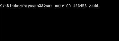 2、接着在弹出命令窗口输入“net user AA 123456 /add”回车确定之后我们就可以使用123456作为密码登录了。