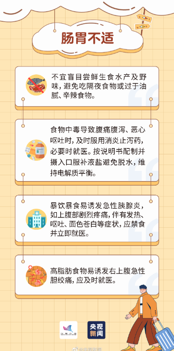 ①五一假期切勿暴饮暴食,避免吃隔夜食物或过油过辣食物,以免引发肠胃不适;