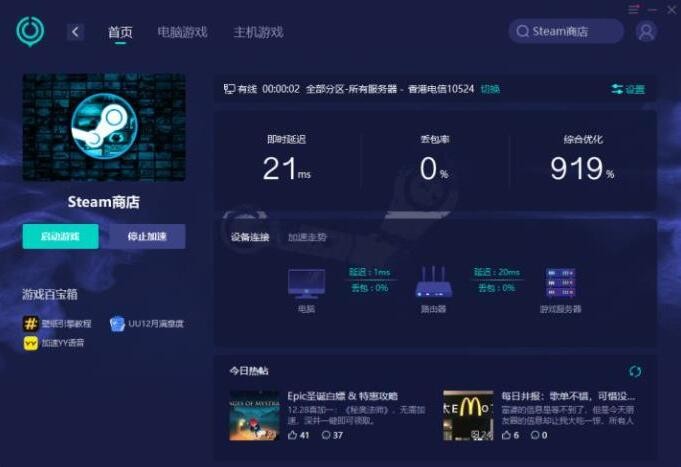 1、首先下载网易uu加速软件或奇游加速工具,通过加速软件来解决steam错误代码-118,加速后打开steam就可以了。