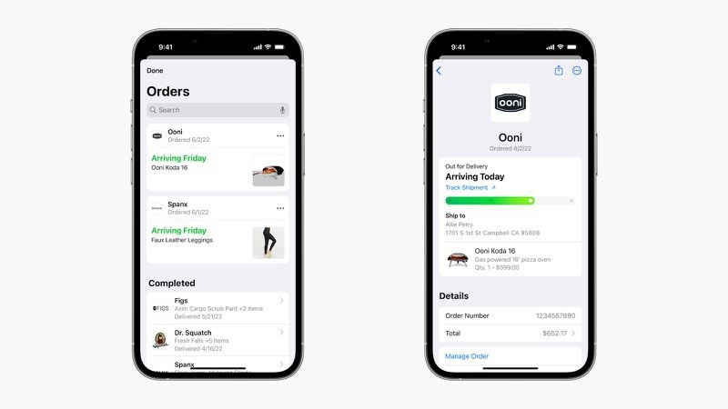 iOS 16 上的 Apple Pay 在电子钱袋应用程序中为通过 Apple Pay 完成的在线订单提供了新的内置订单跟踪信息。跟踪器提供订单的预计交付日期,并指示包裹何时交付。