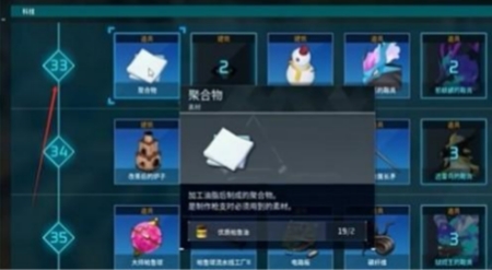 1、聚合物是后期材料,需要玩家达到33级科技水平才能解锁。