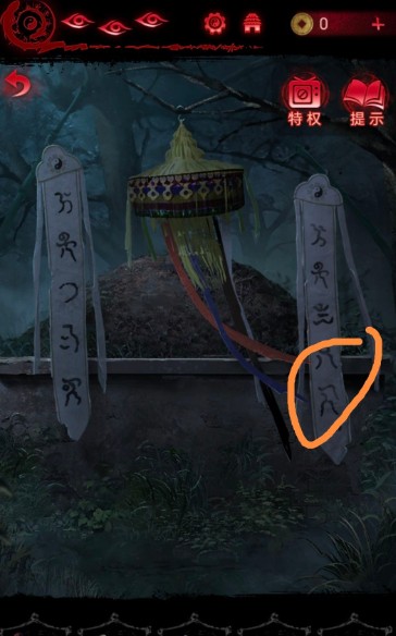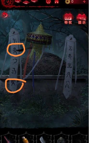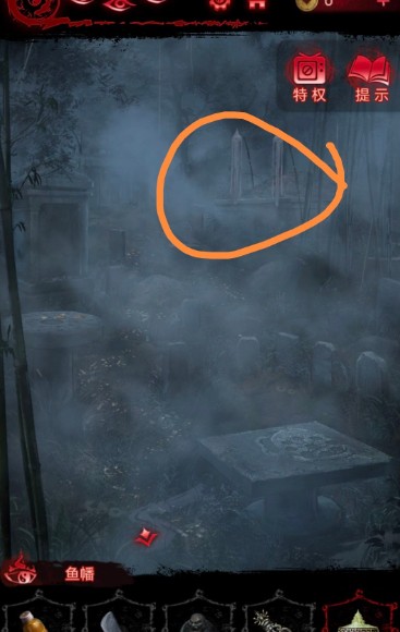1、在之前的解密可以获得鱼幡,将鱼幡挂在坟头树枝的钩子上;