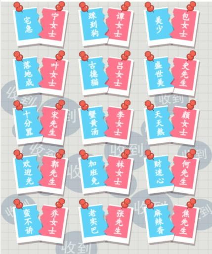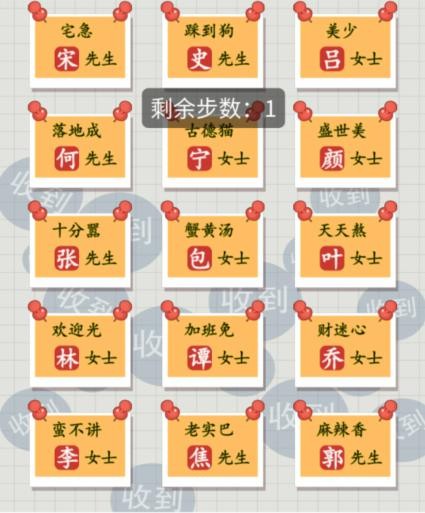 1、这一关我们需要调整姓氏和谐音梗的位置,完成配对。